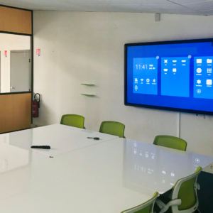 | Intégration | Cet écran comprend sans frais supplémentaires et sans abonnement tout ce dont vous pouvez avoir besoin dans votre salle de réunion. Mises à jour gratuites du micrologiciel. Gestion distante d’un nombre illimité d’appareils en mode tablette. Logiciel de communications unifiées Stage basé sur le navigateur. Application de tableau blanc avec reconnaissance de l’écriture manuscrite. Synchronisation du système de réservation de salles avec les calendriers Outlook 365 et MS Exchange. Application Clever Message pour afficher des messages. respectant votre charte graphique. |